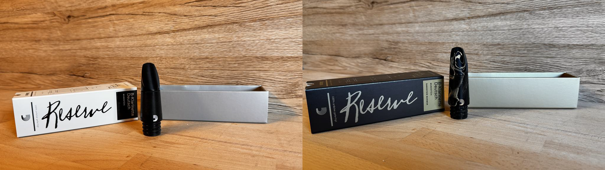 Dieses neue Mundstück für deutsche Klarinette von d’addario Reserve hat uns in Ansprache und Klangverhalten sehr überzeugt. Es zeichnet sich durch einen sehr warmen Ton aus und die Leichtigkeit der Ansprache im hohen Register ist überragend. Es gibt nur ein Bahnmodell dieses Mundstücks in schwarz oder als Marble.
